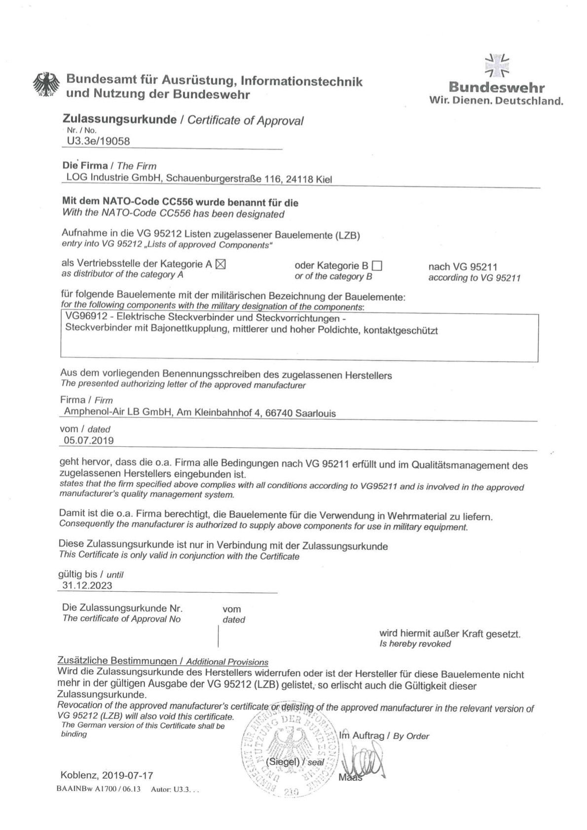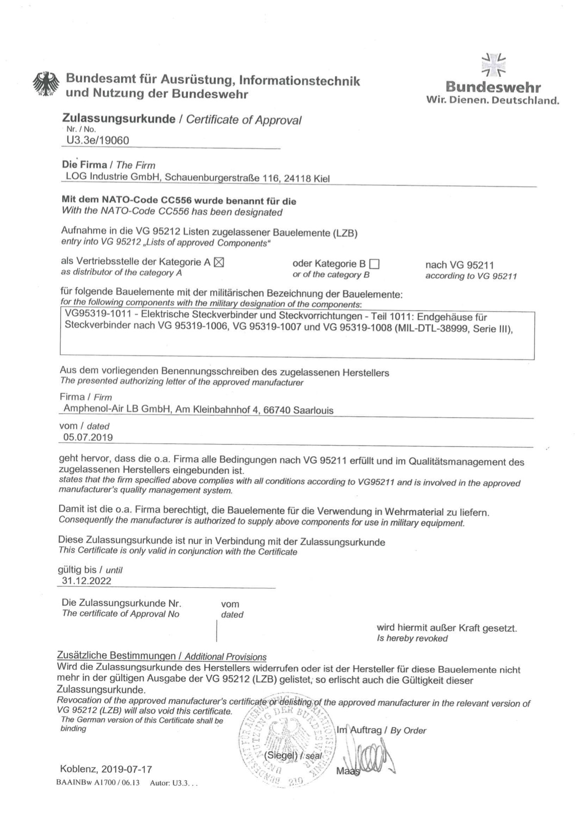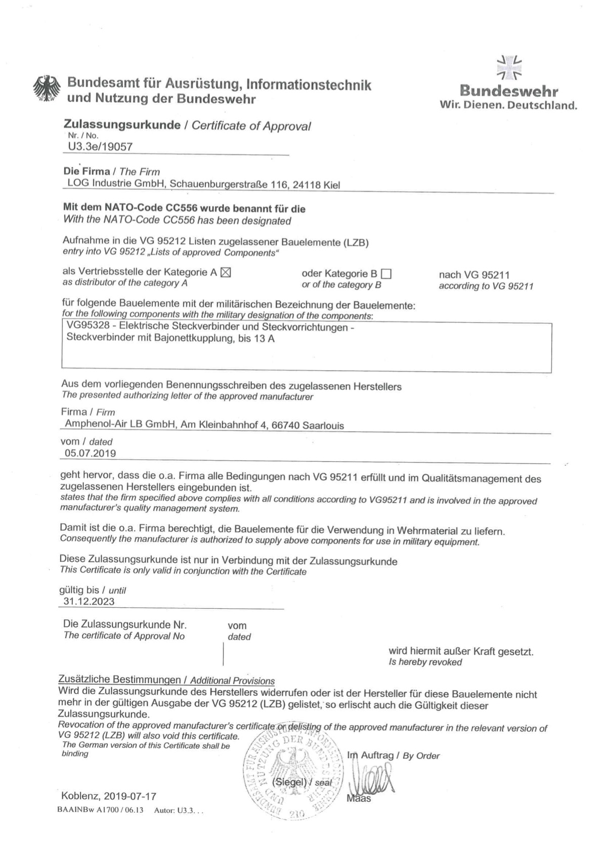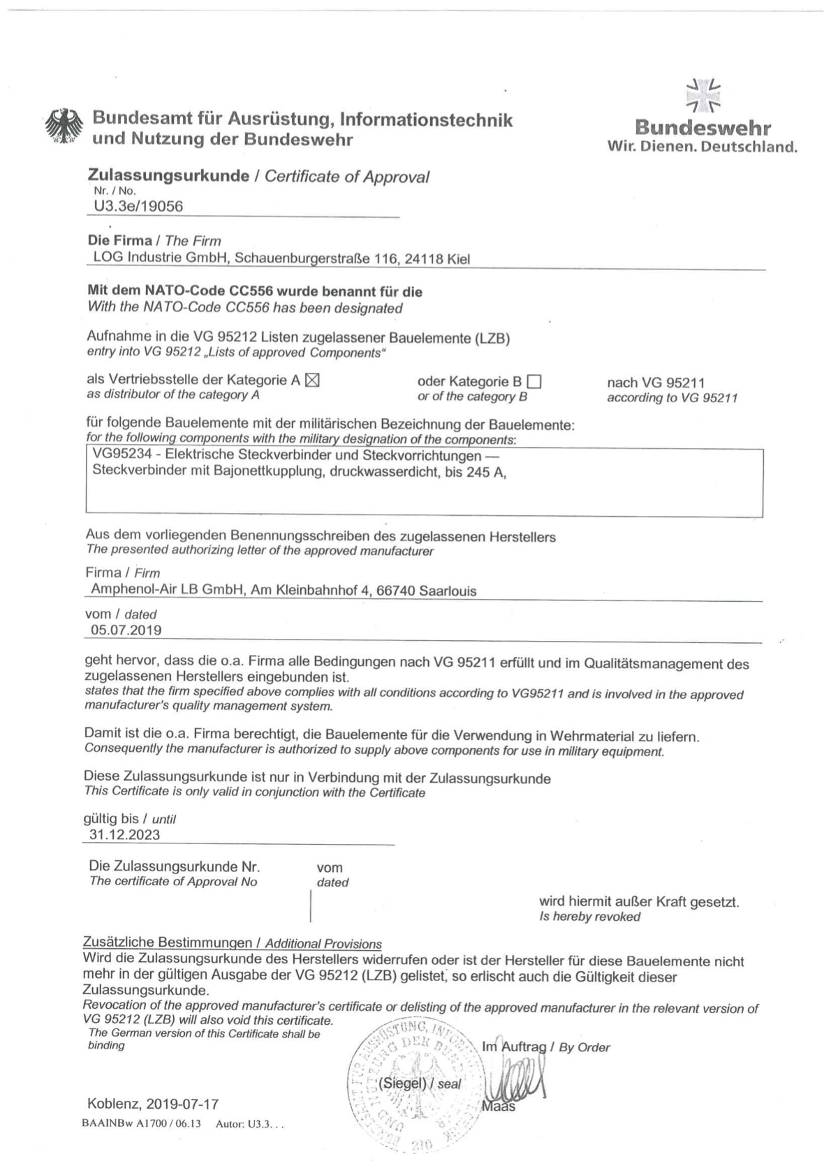 Bundeswehr zertifiziert LOG Industrie als Lieferant der höchsten Kategorie
