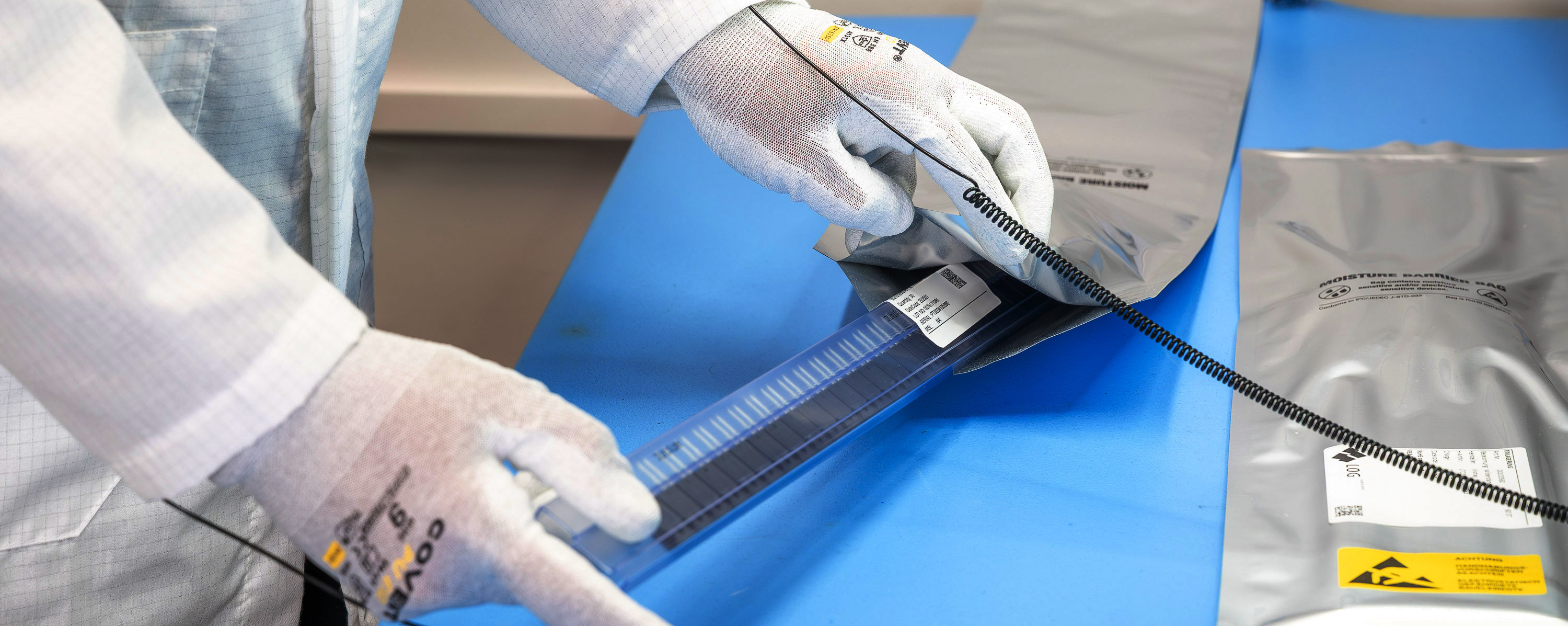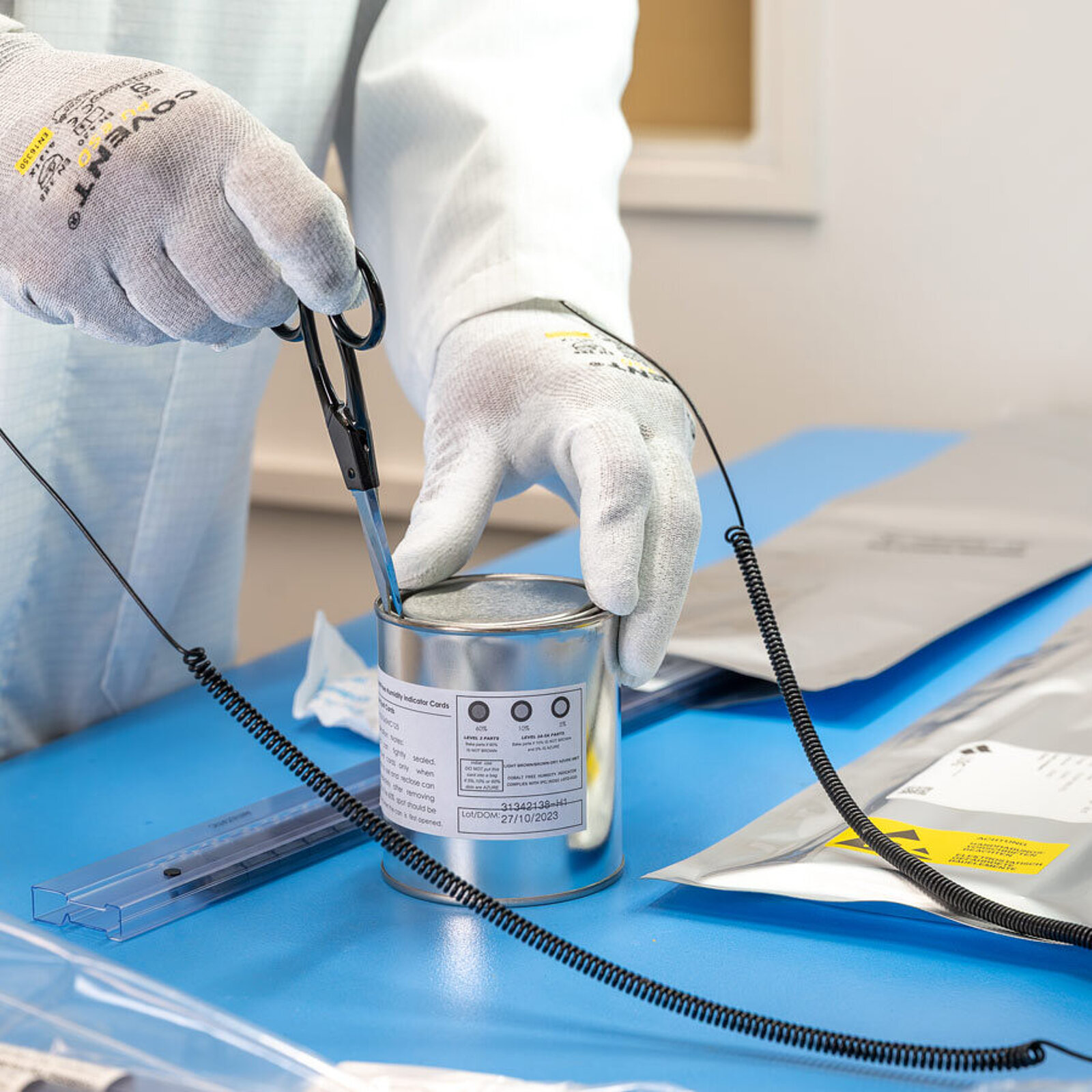 Unser Lager bietet nicht nur genug Platz für die Langzeitlagerung Ihres Materials – empfindliche Komponenten verpacken wir bauteilgerecht. Unser Standard-Langzeitlagerung erfolgt in EMV-Schutzfolie, die unter Stickstoff verschweißt weden.